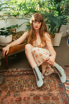 An evocative pale blue hook and eye boot for the modern romantic- unexpected and enchanting, it's a personal favorite!