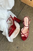 Sexy, strappy, fiery- this is Electra! Step out in these juicy red patent leather platform sandals- whether paired with a little black dress, wide leg trousers or your favorite jeans- these will elevate your style and are the perfect statement piece for parties, nights out, or any occasion that demands a touch of glam!